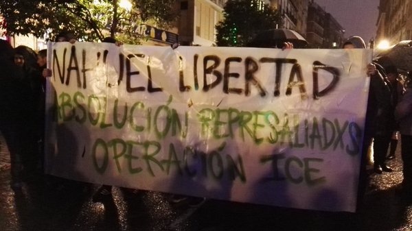 Nosotros como todos los jueves marcharemos con nuestrso compañeros para exigir su libertad y la absolución de todos los represaliados en la operación ICE.